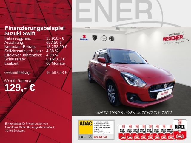 Deze Suzuki Swift staat te koop in Duitsland bij een officiële Suzuki dealer. Wanneer u gebruik maakt van onze auto import service dan regelen wij het aankoopproces samen met u. U tekent en betaalt zelf. U bent in de meeste gevallen ook juridisch de koper. Dat kan belangrijk zijn voor garantie, rechtspositie en de lagere Duitse btw.