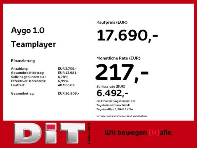 Voor zakelijke klanten bieden wij optioneel een financial lease oplossing en voor particuliere klanten een persoonlijke lening. Met onderstaande module kunt u uw maandbedrag berekenen voor het financieren van bovenstaande Toyota Aygo.