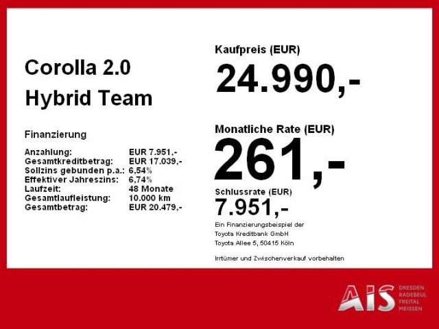 Voor zakelijke klanten bieden wij optioneel een financial lease oplossing en voor particuliere klanten een persoonlijke lening. Met onderstaande module kunt u uw maandbedrag berekenen voor het financieren van bovenstaande Toyota Corolla.