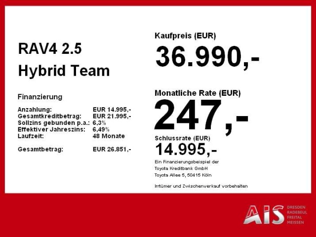 Voor zakelijke klanten bieden wij optioneel een financial lease oplossing en voor particuliere klanten een persoonlijke lening. Met onderstaande module kunt u uw maandbedrag berekenen voor het financieren van bovenstaande Toyota RAV 4.