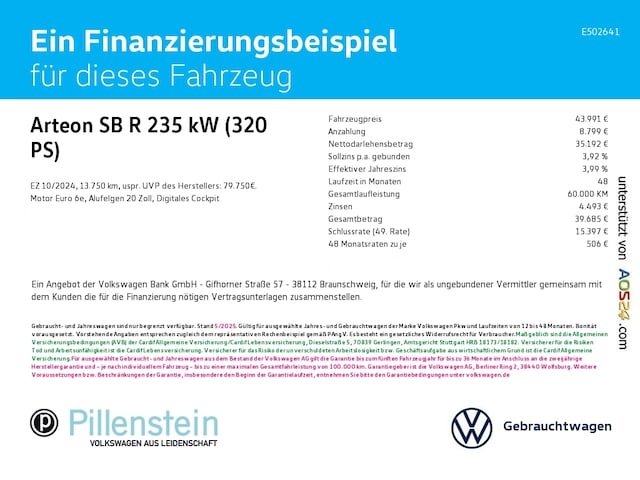 Voor zakelijke klanten bieden wij optioneel een financial lease oplossing en voor particuliere klanten een persoonlijke lening. Met onderstaande module kunt u uw maandbedrag berekenen voor het financieren van bovenstaande Volkswagen Arteon Shooting Brake.