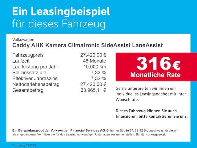 Voor zakelijke klanten bieden wij optioneel een financial lease oplossing en voor particuliere klanten een persoonlijke lening. Met onderstaande module kunt u uw maandbedrag berekenen voor het financieren van bovenstaande Volkswagen Caddy.