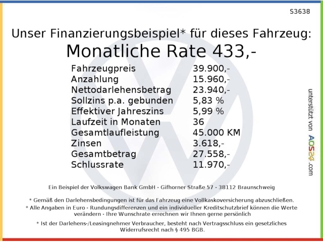 N.b. deze informatie is gebaseerd op de gegevens uit de advertentie van de verkoper en een computermodel voor optiematching. Er kunnen fouten voorkomen; Das Automotive aanvaardt hiervoor geen aansprakelijkheid. Controleer altijd vóór aankoop de volledige optielijst in de Duitse advertentie en verifieer in de koopovereenkomst of alles overeenkomt met uw wensen. Bij twijfel vragen wij dit graag voor u na bij de verkoper