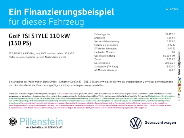 Voor zakelijke klanten bieden wij optioneel een financial lease oplossing en voor particuliere klanten een persoonlijke lening. Met onderstaande module kunt u uw maandbedrag berekenen voor het financieren van bovenstaande Volkswagen Golf.