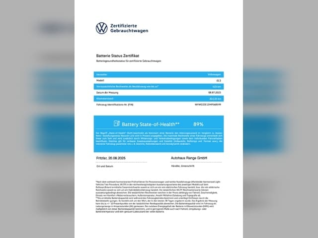 Deze Volkswagen ID.3 staat te koop in Duitsland bij een officiële Volkswagen dealer. Wij zullen het aankoopproces volledig voor u faciliteren wanneer u gebruik maakt van ons Premium of Premium + pakket. U hoeft hier dan niets zelf voor te doen, behalve uw handtekening zetten en te betalen. In de meeste gevallen bent u op papier de koper van auto. Dit i.v.m. zaken als garantie, juridische positie en lagere BTW in Duitsland (BTW, alleen relevant wanneer u de auto particulier aanschaft).