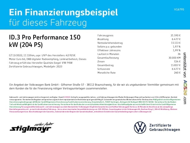 Voor zakelijke klanten bieden wij optioneel een financial lease oplossing en voor particuliere klanten een persoonlijke lening. Met onderstaande module kunt u uw maandbedrag berekenen voor het financieren van bovenstaande Volkswagen ID.3.