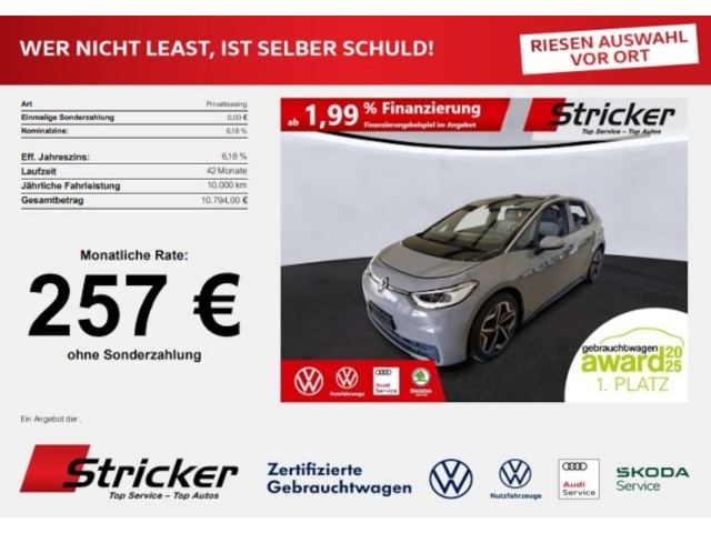 Deze Volkswagen ID.3 staat te koop in Duitsland bij een officiële Volkswagen dealer. Wanneer u gebruik maakt van onze auto import service dan regelen wij het aankoopproces samen met u. U tekent en betaalt zelf. U bent in de meeste gevallen ook juridisch de koper. Dat kan belangrijk zijn voor garantie, rechtspositie en de lagere Duitse btw.