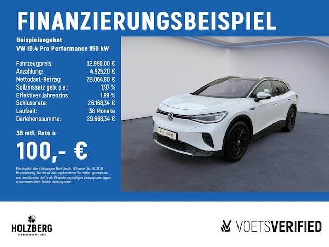 Voor zakelijke klanten bieden wij optioneel een financial lease oplossing en voor particuliere klanten een persoonlijke lening. Met onderstaande module kunt u uw maandbedrag berekenen voor het financieren van bovenstaande Volkswagen ID.4.
