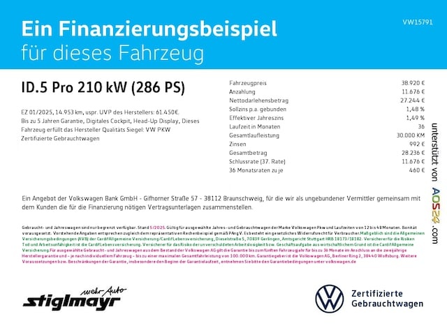 Voor zakelijke klanten bieden wij optioneel een financial lease oplossing en voor particuliere klanten een persoonlijke lening. Met onderstaande module kunt u uw maandbedrag berekenen voor het financieren van bovenstaande Volkswagen ID.5.