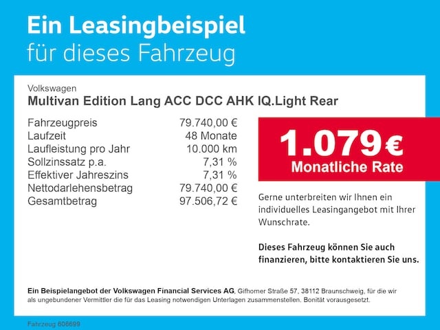 Voor zakelijke klanten bieden wij optioneel een financial lease oplossing en voor particuliere klanten een persoonlijke lening. Met onderstaande module kunt u uw maandbedrag berekenen voor het financieren van bovenstaande Volkswagen Multivan langversion.