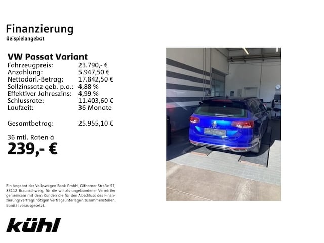 Voor zakelijke klanten bieden wij optioneel een financial lease oplossing en voor particuliere klanten een persoonlijke lening. Met onderstaande module kunt u uw maandbedrag berekenen voor het financieren van bovenstaande Volkswagen Passat Variant.