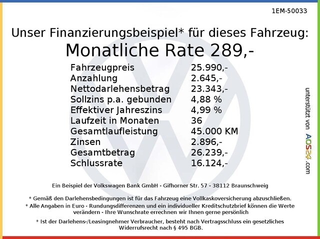 Voor zakelijke klanten bieden wij optioneel een financial lease oplossing en voor particuliere klanten een persoonlijke lening. Met onderstaande module kunt u uw maandbedrag berekenen voor het financieren van bovenstaande Volkswagen Passat Variant.