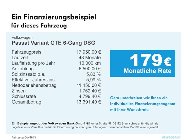Voor zakelijke klanten bieden wij optioneel een financial lease oplossing en voor particuliere klanten een persoonlijke lening. Met onderstaande module kunt u uw maandbedrag berekenen voor het financieren van bovenstaande Volkswagen Passat Variant.