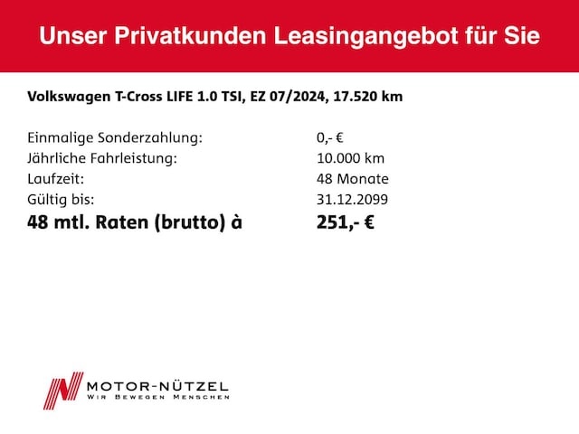 Voor zakelijke klanten bieden wij optioneel een financial lease oplossing en voor particuliere klanten een persoonlijke lening. Met onderstaande module kunt u uw maandbedrag berekenen voor het financieren van bovenstaande Volkswagen T-Cross.