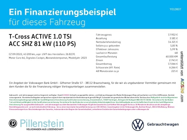 Deze Volkswagen T-Cross staat te koop in Duitsland bij een officiële Volkswagen dealer. Wanneer u gebruik maakt van onze auto import service dan regelen wij het aankoopproces samen met u. U tekent en betaalt zelf. U bent in de meeste gevallen ook juridisch de koper. Dat kan belangrijk zijn voor garantie, rechtspositie en de lagere Duitse btw.