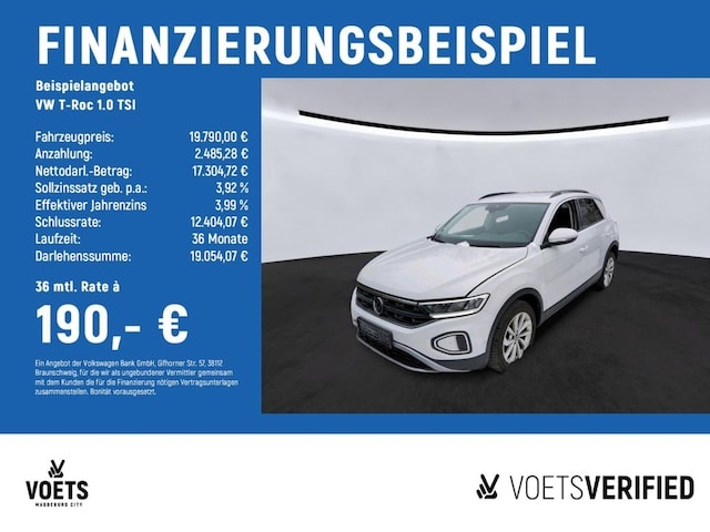 Voor zakelijke klanten bieden wij optioneel een financial lease oplossing en voor particuliere klanten een persoonlijke lening. Met onderstaande module kunt u uw maandbedrag berekenen voor het financieren van bovenstaande Volkswagen T-Roc.