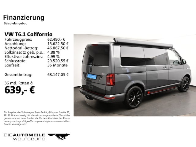 Voor zakelijke klanten bieden wij optioneel een financial lease oplossing en voor particuliere klanten een persoonlijke lening. Met onderstaande module kunt u uw maandbedrag berekenen voor het financieren van bovenstaande Volkswagen T6.1 California.