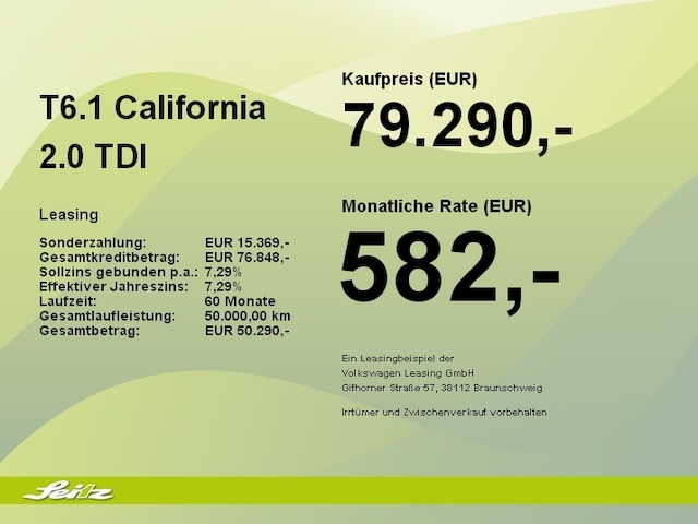 Voor zakelijke klanten bieden wij optioneel een financial lease oplossing en voor particuliere klanten een persoonlijke lening. Met onderstaande module kunt u uw maandbedrag berekenen voor het financieren van bovenstaande Volkswagen T6.1 California.