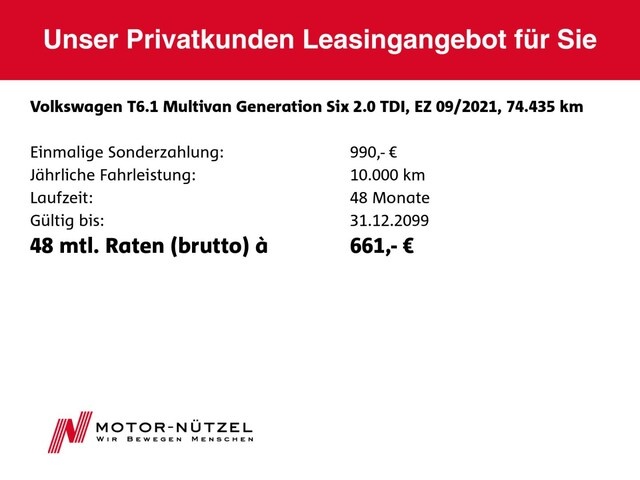 Voor zakelijke klanten bieden wij optioneel een financial lease oplossing en voor particuliere klanten een persoonlijke lening. Met onderstaande module kunt u uw maandbedrag berekenen voor het financieren van bovenstaande Volkswagen T6.1 Multivan.