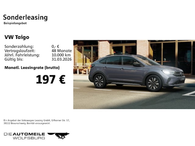 Voor zakelijke klanten bieden wij optioneel een financial lease oplossing en voor particuliere klanten een persoonlijke lening. Met onderstaande module kunt u uw maandbedrag berekenen voor het financieren van bovenstaande Volkswagen Taigo.