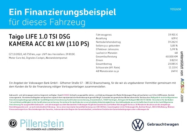 Voor zakelijke klanten bieden wij optioneel een financial lease oplossing en voor particuliere klanten een persoonlijke lening. Met onderstaande module kunt u uw maandbedrag berekenen voor het financieren van bovenstaande Volkswagen Taigo.