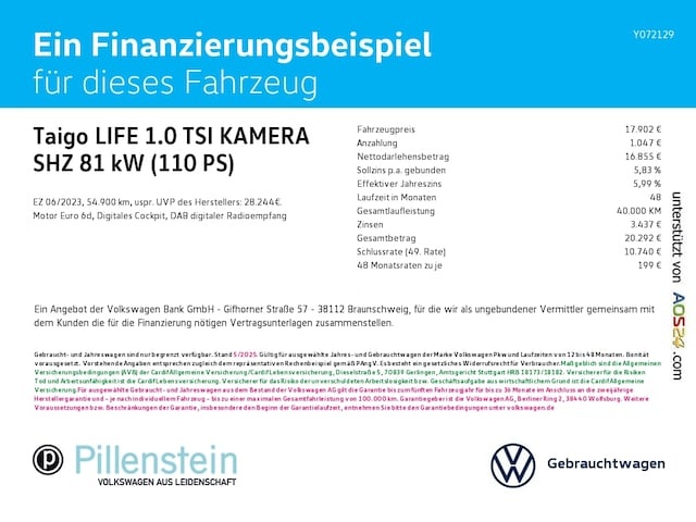 Voor zakelijke klanten bieden wij optioneel een financial lease oplossing en voor particuliere klanten een persoonlijke lening. Met onderstaande module kunt u uw maandbedrag berekenen voor het financieren van bovenstaande Volkswagen Taigo.