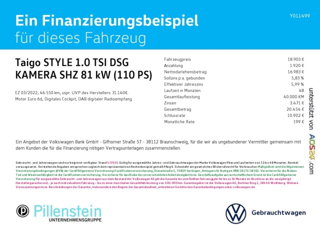 Voor zakelijke klanten bieden wij optioneel een financial lease oplossing en voor particuliere klanten een persoonlijke lening. Met onderstaande module kunt u uw maandbedrag berekenen voor het financieren van bovenstaande Volkswagen Taigo.