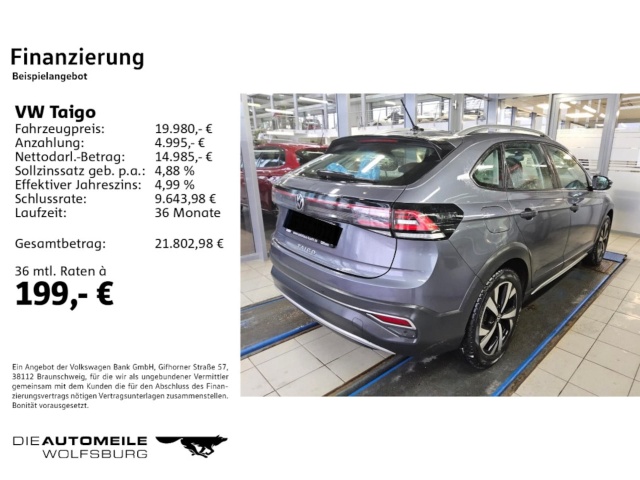 Voor zakelijke klanten bieden wij optioneel een financial lease oplossing en voor particuliere klanten een persoonlijke lening. Met onderstaande module kunt u uw maandbedrag berekenen voor het financieren van bovenstaande Volkswagen Taigo.