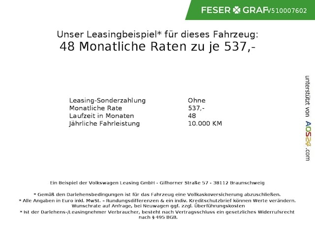 Voor zakelijke klanten bieden wij optioneel een financial lease oplossing en voor particuliere klanten een persoonlijke lening. Met onderstaande module kunt u uw maandbedrag berekenen voor het financieren van bovenstaande Volkswagen Tayron.