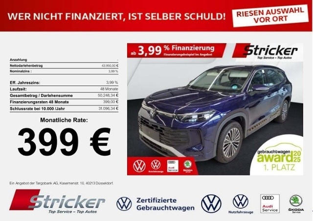 Voor zakelijke klanten bieden wij optioneel een financial lease oplossing en voor particuliere klanten een persoonlijke lening. Met onderstaande module kunt u uw maandbedrag berekenen voor het financieren van bovenstaande Volkswagen Tayron.