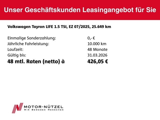 Voor zakelijke klanten bieden wij optioneel een financial lease oplossing en voor particuliere klanten een persoonlijke lening. Met onderstaande module kunt u uw maandbedrag berekenen voor het financieren van bovenstaande Volkswagen Tayron.