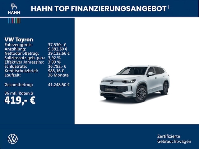 Voor zakelijke klanten bieden wij optioneel een financial lease oplossing en voor particuliere klanten een persoonlijke lening. Met onderstaande module kunt u uw maandbedrag berekenen voor het financieren van bovenstaande Volkswagen Tayron.