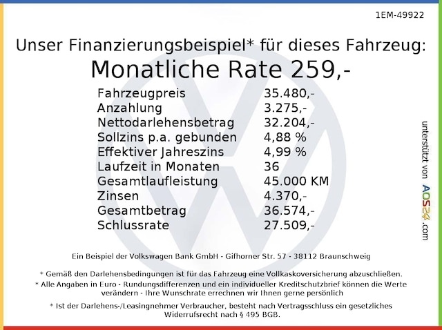 Voor zakelijke klanten bieden wij optioneel een financial lease oplossing en voor particuliere klanten een persoonlijke lening. Met onderstaande module kunt u uw maandbedrag berekenen voor het financieren van bovenstaande Volkswagen Tayron.