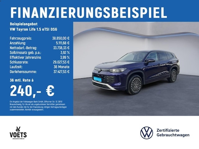 Voor zakelijke klanten bieden wij optioneel een financial lease oplossing en voor particuliere klanten een persoonlijke lening. Met onderstaande module kunt u uw maandbedrag berekenen voor het financieren van bovenstaande Volkswagen Tayron.