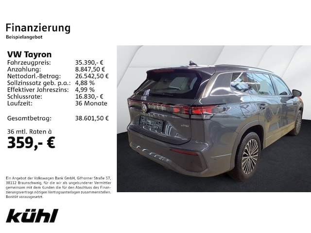 Voor zakelijke klanten bieden wij optioneel een financial lease oplossing en voor particuliere klanten een persoonlijke lening. Met onderstaande module kunt u uw maandbedrag berekenen voor het financieren van bovenstaande Volkswagen Tayron.