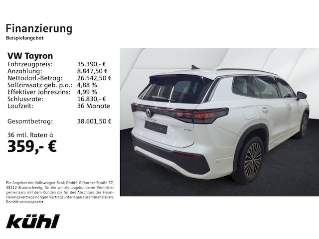 Voor zakelijke klanten bieden wij optioneel een financial lease oplossing en voor particuliere klanten een persoonlijke lening. Met onderstaande module kunt u uw maandbedrag berekenen voor het financieren van bovenstaande Volkswagen Tayron.