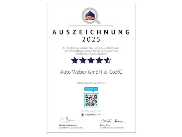 Berekeningen en teksten worden gebaseerd op informatie van derden. Vraag ons altijd om een definitieve controle alvorens u een auto in Duitsland aanschaft. Wij streven ernaar u zo correct en zorgvuldig mogelijk te informeren, maar de verstrekte informatie kan fouten bevatten. We aanvaarden dan ook geen aansprakelijkheid voor onjuiste of onvolledige informatie in onze offertes en verstrekte informatie. Aan deze website, mondelinge afspraken, toezeggingen of e-mails in welke vorm dan ook kunnen geen rechten worden ontleend. Er is expliciet geen sprake van een overeenkomst met Das Automotive totdat er een door beide partijen getekende Overeenkomst van Opdracht bestaat.