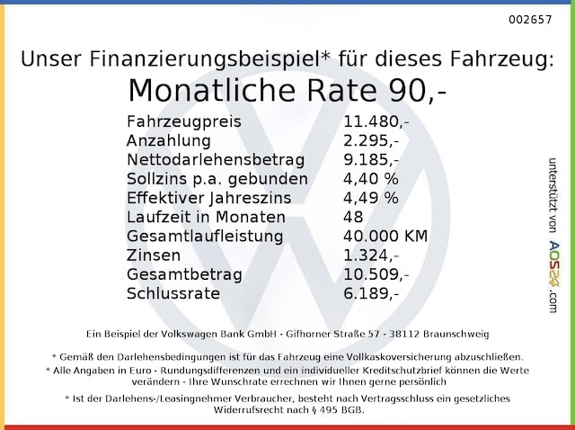 Voor zakelijke klanten bieden wij optioneel een financial lease oplossing en voor particuliere klanten een persoonlijke lening. Met onderstaande module kunt u uw maandbedrag berekenen voor het financieren van bovenstaande Volkswagen up!.