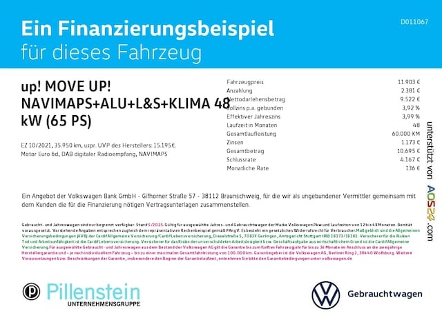 Voor zakelijke klanten bieden wij optioneel een financial lease oplossing en voor particuliere klanten een persoonlijke lening. Met onderstaande module kunt u uw maandbedrag berekenen voor het financieren van bovenstaande Volkswagen up!.