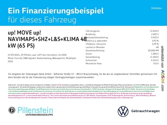 Voor zakelijke klanten bieden wij optioneel een financial lease oplossing en voor particuliere klanten een persoonlijke lening. Met onderstaande module kunt u uw maandbedrag berekenen voor het financieren van bovenstaande Volkswagen up!.