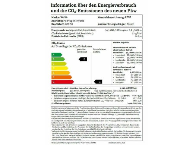 In de Duitse advertentie van deze Volvo XC 90 staat een CO2-uitstoot vermeld van 33 gram per km. Op basis daarvan hebben wij geautomatiseerd een indicatief rest-BPM bedrag van € 582 berekend op basis van de afschrijvingstabel van de Belastingdienst. Een handmatige BPM berekening o.b.v. een waardebepaling leidt voor jonge auto's vaak tot een lager rest-BPM bedrag. Vraag hiertoe een offerte aan, vaak kunnen we daar een besparing voor u realiseren. Om hiervoor een fiscaal akkoord te krijgen zal de BPM aangifte worden aangevuld met een waardebepaling taxatierapport. Wij rekenen een fee voor onze bemiddeling hierin. Uiteraard alleen wanneer dit rendabel is.