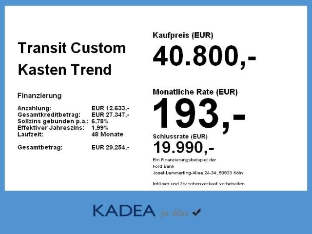 Voor zakelijke klanten bieden wij optioneel een financial lease oplossing en voor particuliere klanten een persoonlijke lening. Met onderstaande module kunt u uw maandbedrag berekenen voor het financieren van bovenstaande Ford Transit Custom.