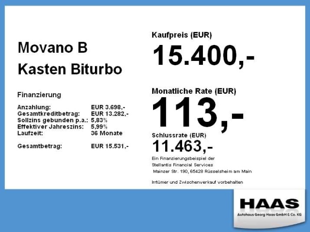 Voor zakelijke klanten bieden wij optioneel een financial lease oplossing en voor particuliere klanten een persoonlijke lening. Met onderstaande module kunt u uw maandbedrag berekenen voor het financieren van bovenstaande Opel Movano.