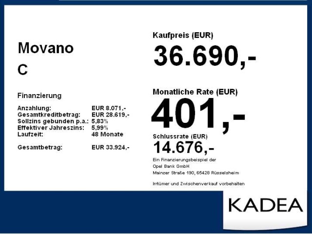 Voor zakelijke klanten bieden wij optioneel een financial lease oplossing en voor particuliere klanten een persoonlijke lening. Met onderstaande module kunt u uw maandbedrag berekenen voor het financieren van bovenstaande Opel Movano.