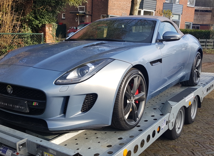 Deze Jaguar F-type 3.0 V6 Convertible F-type 3.0 V6 Convertible hebben wij geïmporteerd uit Duitsland voor een tevreden klant van onze auto import service.