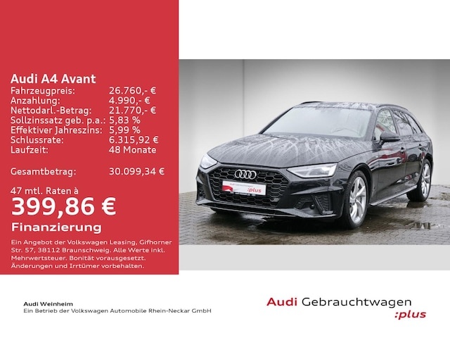 Voor zakelijke klanten bieden wij optioneel een financial lease oplossing en voor particuliere klanten een persoonlijke lening. Met onderstaande module kunt u uw maandbedrag berekenen voor het financieren van bovenstaande Audi A4.