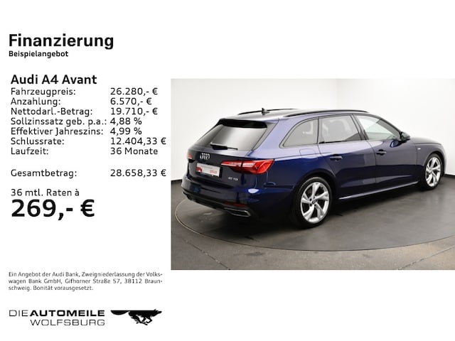 Voor zakelijke klanten bieden wij optioneel een financial lease oplossing en voor particuliere klanten een persoonlijke lening. Met onderstaande module kunt u uw maandbedrag berekenen voor het financieren van bovenstaande Audi A4.