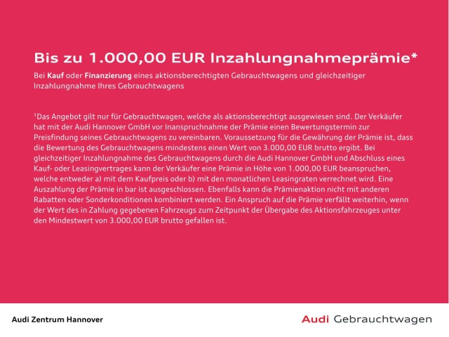 Deze Audi A6 staat te koop in Duitsland bij een officiële Audi dealer. Wanneer u gebruik maakt van onze auto import service dan regelen wij het aankoopproces samen met u. U tekent en betaalt zelf. U bent in de meeste gevallen ook juridisch de koper. Dat kan belangrijk zijn voor garantie, rechtspositie en de lagere Duitse btw.