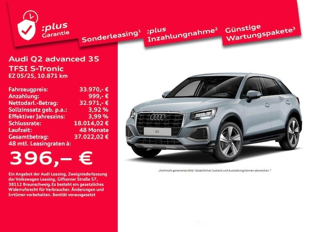 Voor zakelijke klanten bieden wij optioneel een financial lease oplossing en voor particuliere klanten een persoonlijke lening. Met onderstaande module kunt u uw maandbedrag berekenen voor het financieren van bovenstaande Audi Q2.