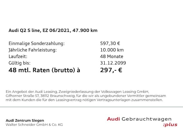 Deze Audi Q2 staat te koop in Duitsland bij een officiële Audi dealer. Wanneer u gebruik maakt van onze auto import service dan regelen wij het aankoopproces samen met u. U tekent en betaalt zelf. U bent in de meeste gevallen ook juridisch de koper. Dat kan belangrijk zijn voor garantie, rechtspositie en de lagere Duitse btw.
